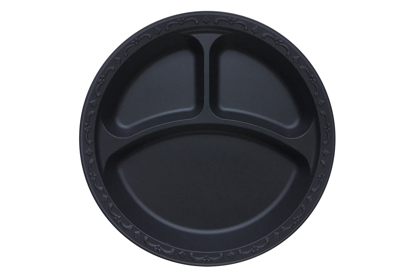 10.25" Plate Pebble Black, 3-compartment, Ivory 400 count #PP103-Black