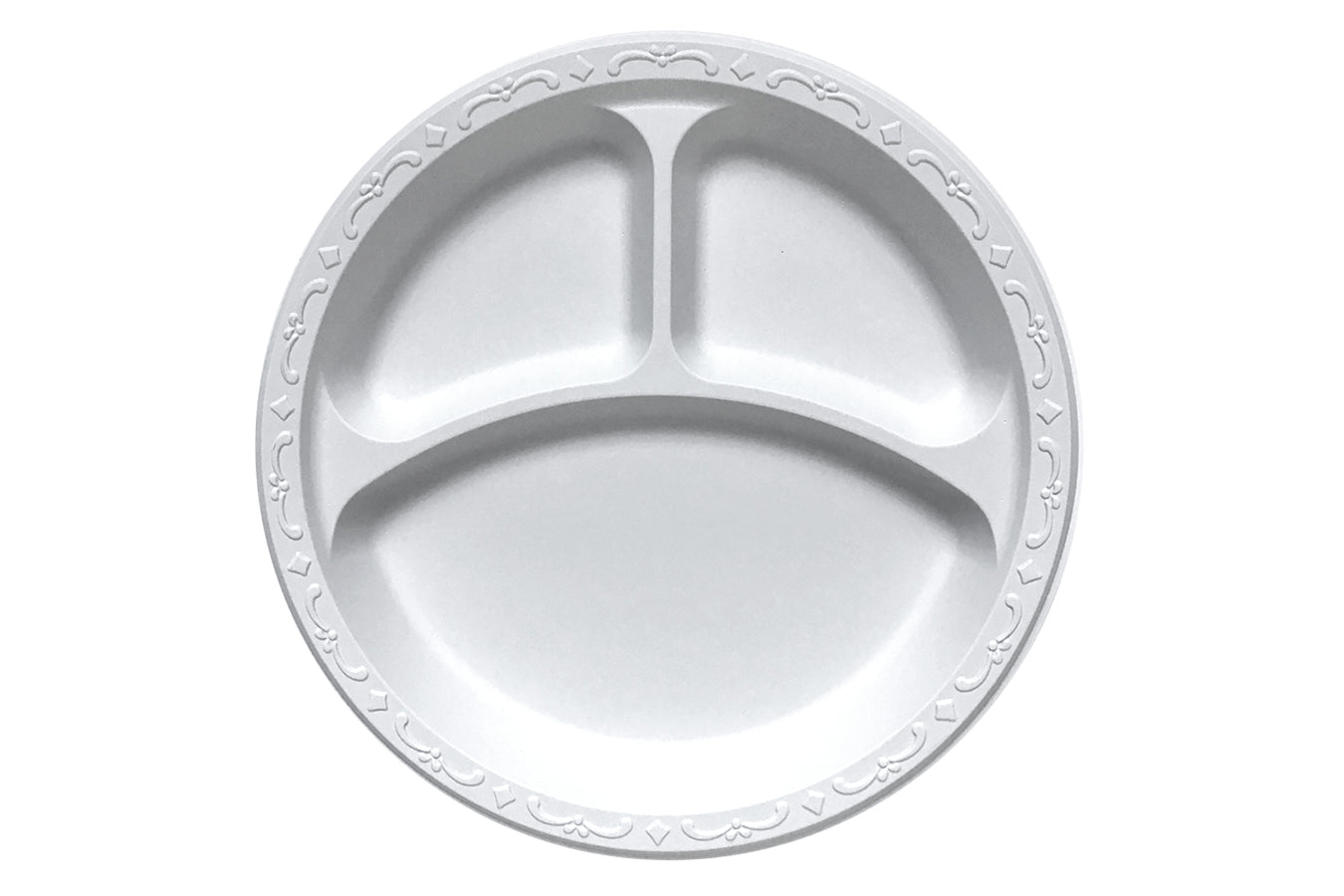 9" Plate Pebble , 3 compartment, Ivory 400 count #PP093-White
