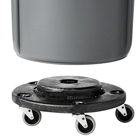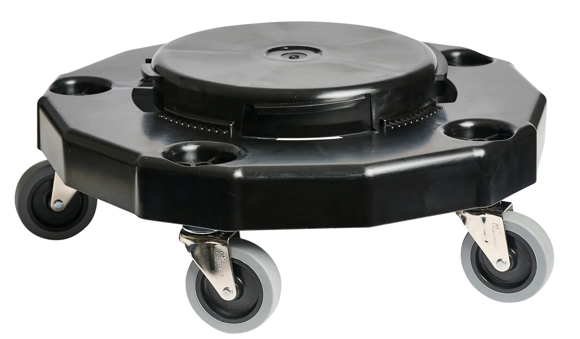 This Universal Garbage Container Dolly has an all-plastic, professional-grade construction that resists rust, chipping, and denting. It features a twist on design and five non-marking swivel casters that lock into the base. The dolly can withstand heavy loads and is easy to maneuver. Use it to carry waste bins to a larger container or to clean multiple sites quickly and effectively. Pair the dolly with a 44 Gal Garbage Container with a lid.